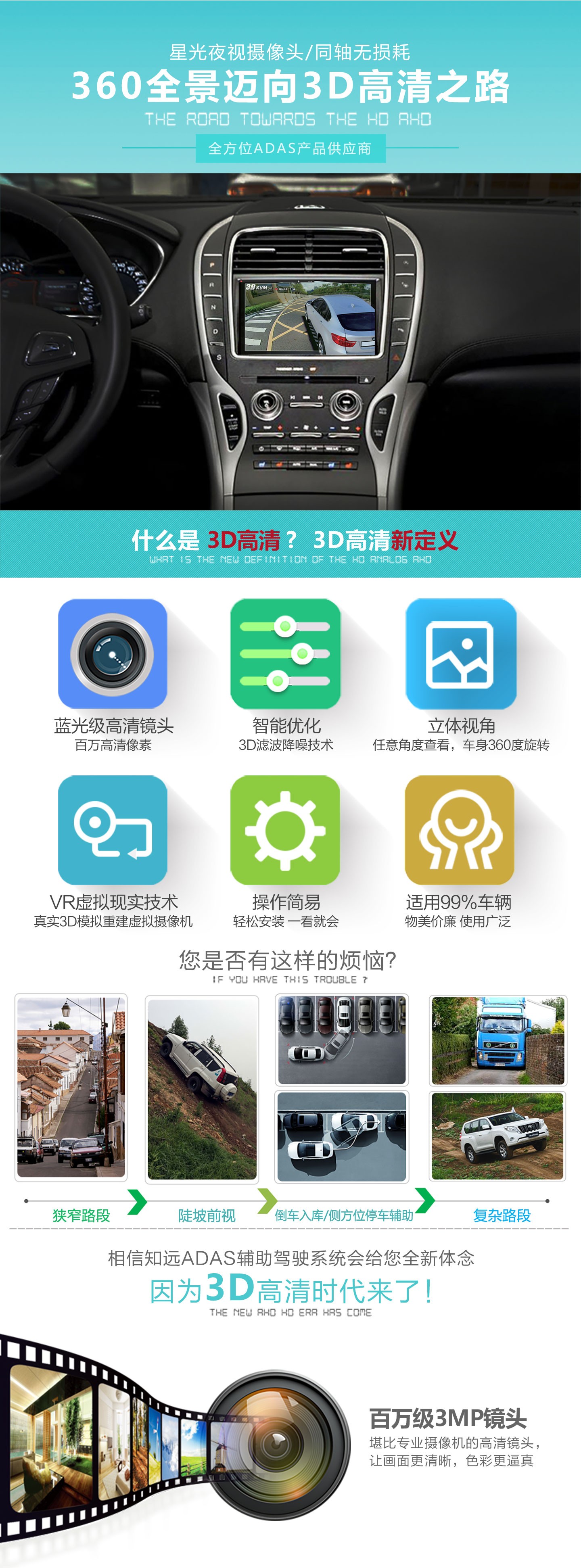 ![]() | 应用 侧边停车、倒车入库、狭窄路段、陡坡行车、低矮障碍、转弯盲区 特点 双核高速CPU、行车全景记录、智能四轮轨迹、停车震动监控、四角可视雷达、独特无缝拼接、倒车自动切换、倒车自动切换、特制广角镜头、环视全景视图、单图自由切换放大、专车专用镜头、睡眠待机保护、智能平面矫正、图文安装指导 汽车360°全景影像环视系统 360度环视全景影像,四面八方一目了然. |