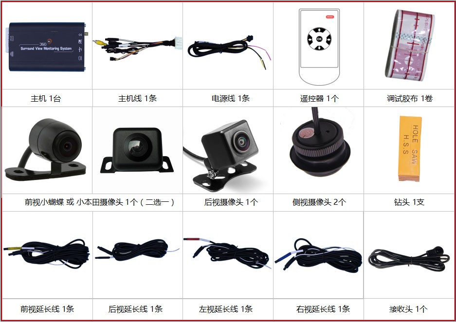 AVM (Around View Monitoring)全车监视系统、全景泊车影像系统、360度全景摄像头、360度全景影像系统、360度全景泊车系统、360度全景可视系统、360度全景倒车影像系统。