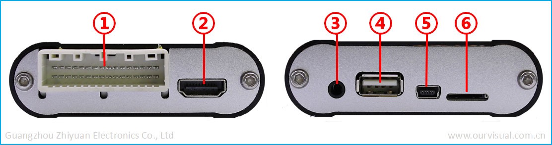 | ③ UART ④ USB ⑤ Update ⑥ TF |